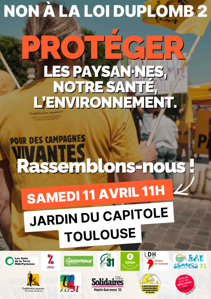 SAMEDI 11 AVRIL RASSEMBLONS-NOUS POUR DIRE ENCORE NON A LA LOI DUPLOMB 2 !